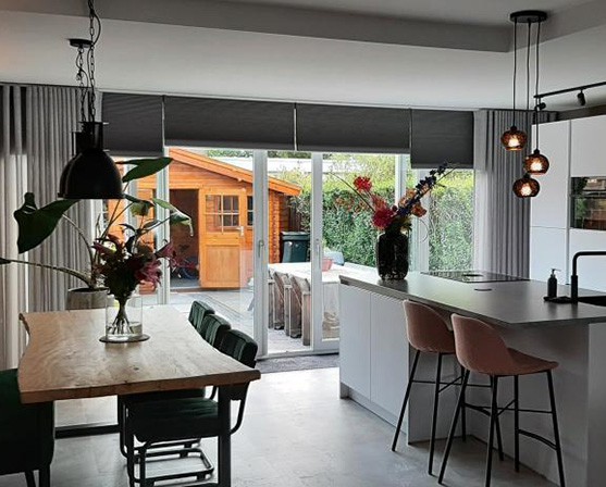 Heb of overweeg jij een aanbouw aan je woning? Dan ben je niet alleen! Het vergroten van de woonruimte is onwijs populair. Logisch. Vanwege de torenhoge huizenprijzen is verhuizen niet aantrekkelijk. Heb je toch behoefte aan meer leefruimte? Dan is het uitbreiden van je huidige woning een stuk voordeliger. Bovendien doet het de waarde van je huis flink stijgen! Een aanbouw bestaat doorgaans uit veel glas. Vaak wordt namelijk gekozen voor een lichtstraat en deuren over de hele breedte. Al dit glas zorgt voor veel extra lichtinval. Heerlijk! Toch? Ja, behalve in de zomer wanneer al dat glas opwarmt. Bovendien heb je veel inkijk. De oplossing? Raamdecoratie natuurlijk! In dit artikel zetten we de beste uitbouw raambekleding voor je op een rij.