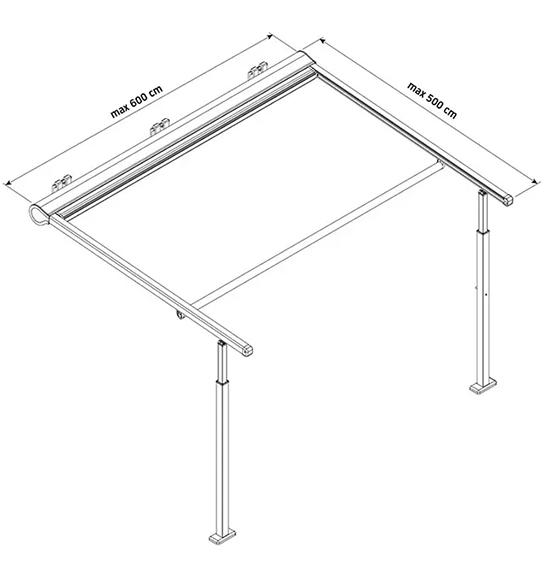 Kies je voor pergola zonwering, dan wordt de Matera geleverd met staanders en monteer je deze tegen de gevel.