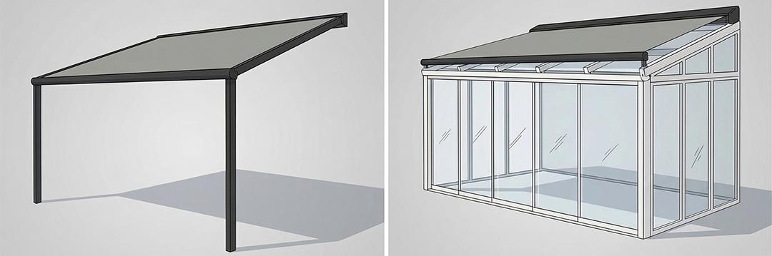 Kies je voor verandazonwering, dan wordt de Matera zonder staanders uitgevoerd en monteer je deze bovenop een bestaande overkapping.