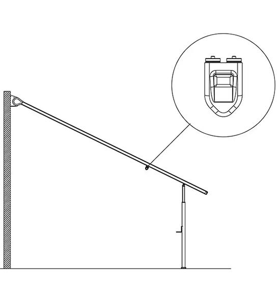 Standaard rust de Matera gedeeltelijk tegen de gevel en op twee staanders. Hierdoor is hij niet geschikt als volledig vrijstaande pergola. Deze pergolazonwering is dus niet geschikt om vrijstaand in de tuin te worden geplaatst. Ontdek onze vrijstaande overkappingen voor aantrekkelijke opties die wel geschikt zijn voor plaatsing in de tuin.